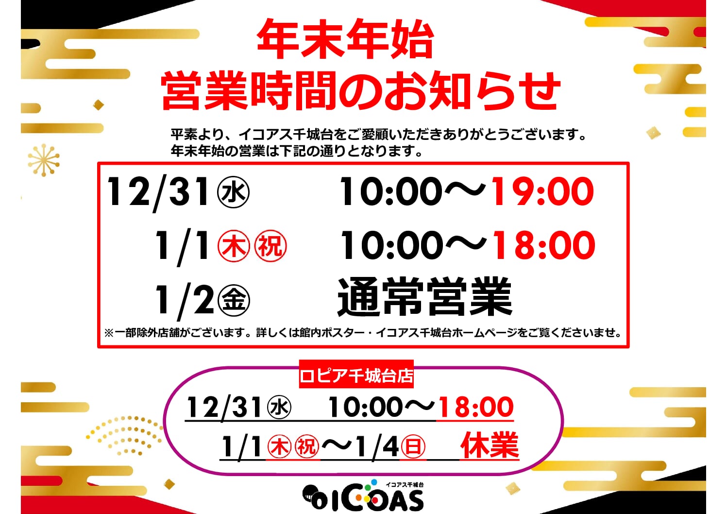 いつもイコアス千城台をご利用いただきまして誠にありがとうございます。
