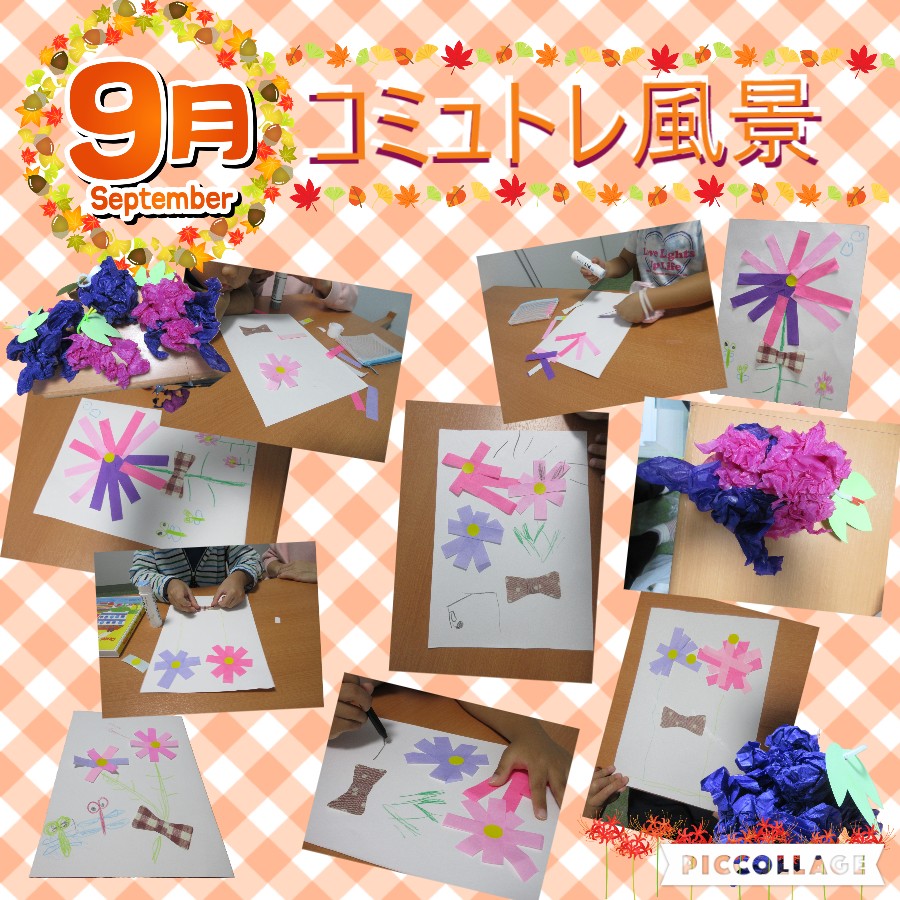 9月のコミュトレでは【ぶどう🍇】【コスモス🌸】を行いました♪