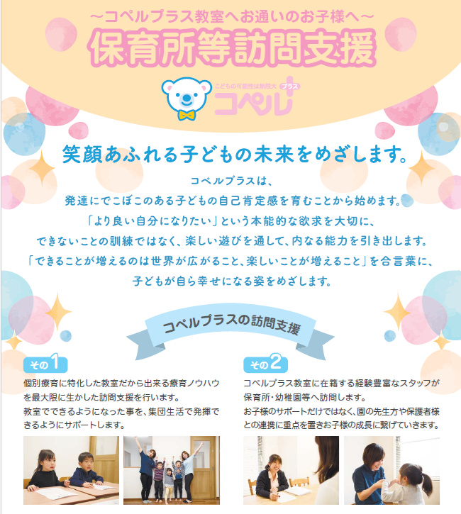 このたび、コペルプラスイコアス千城台教室ででは「保育所等訪問支援サービス」を11月1日より開始いたします🌸