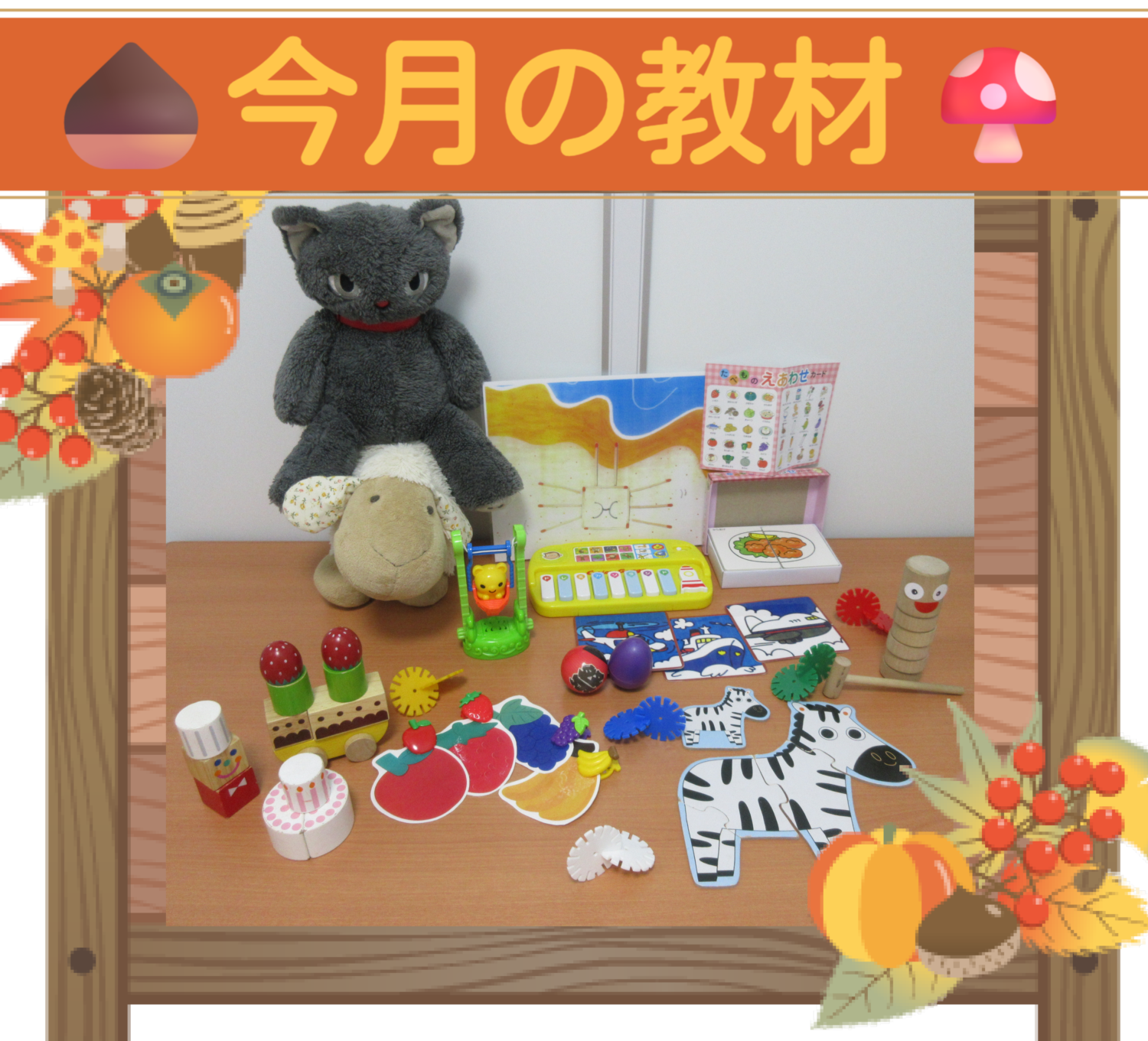 ピアノの玩具やだるま落し、食べ物カードなど楽しい教材がたくさん届きました✨