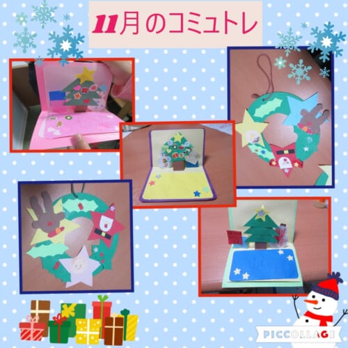 リースはサンタさんにトナカイさん、かわいい飾りつけをした素敵な作品ができました。