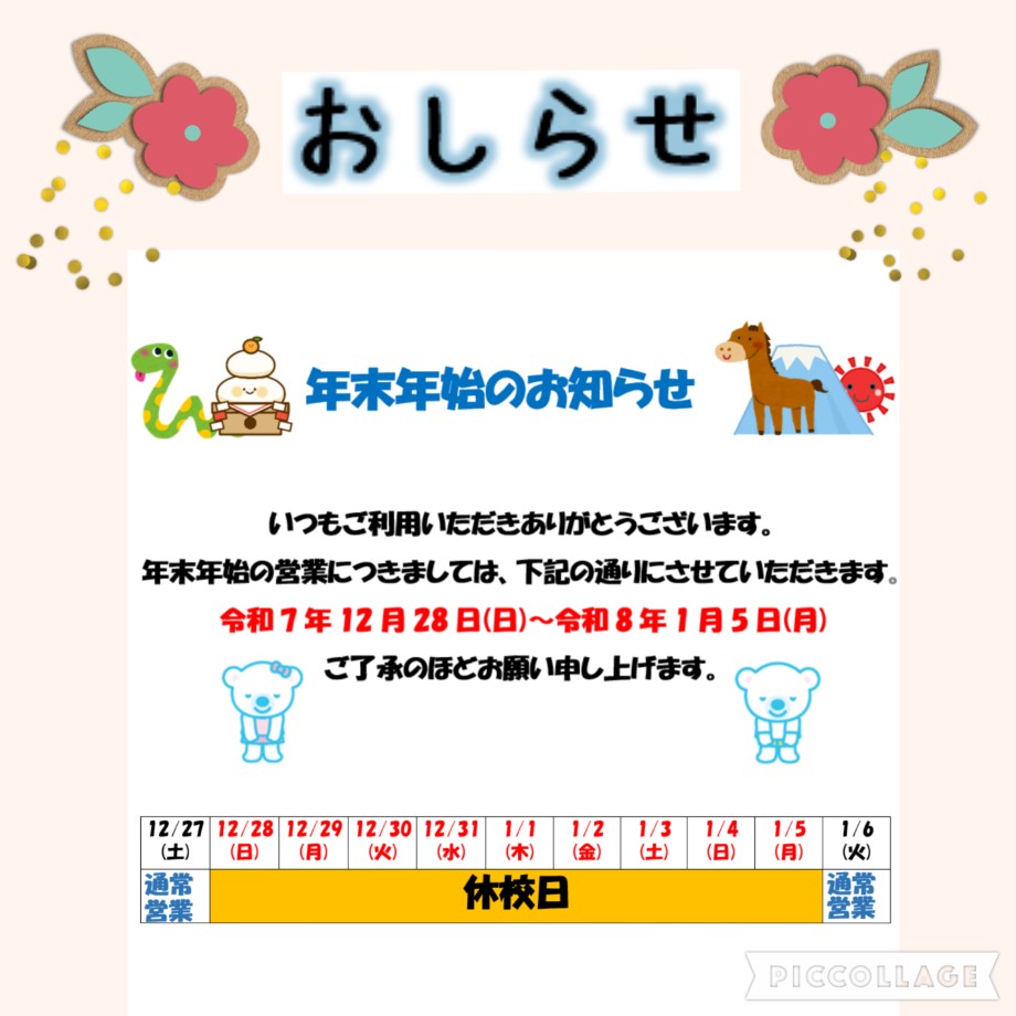 コペルプラス イコアス千城台教室から年末年始のお知らせです✨