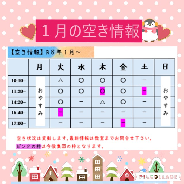 1月の空き情報をお知らせいたします☆