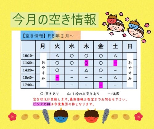 2月の空き情報をお知らせいたします☆