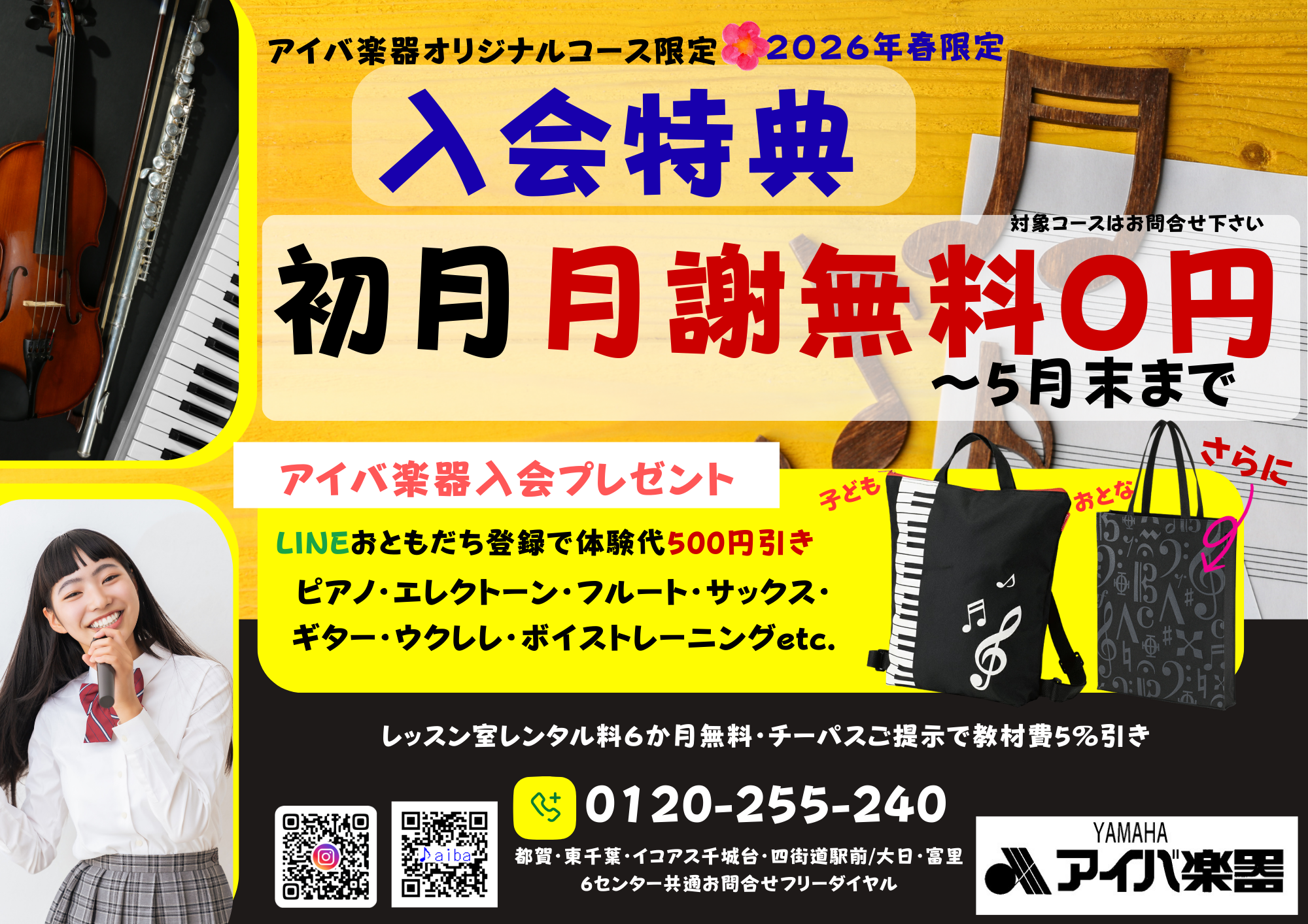 こんにちは、アイバ楽器です。この春、一緒に音楽をはじめてみませんか♪