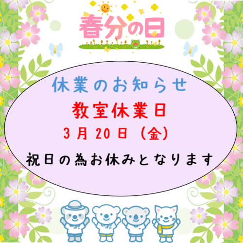 教室休業日のお知らせです🍀