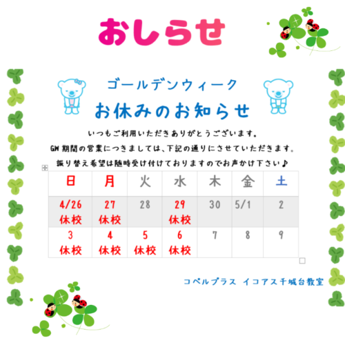 ゴールデンウィークのお休みのお知らせを致します🍀