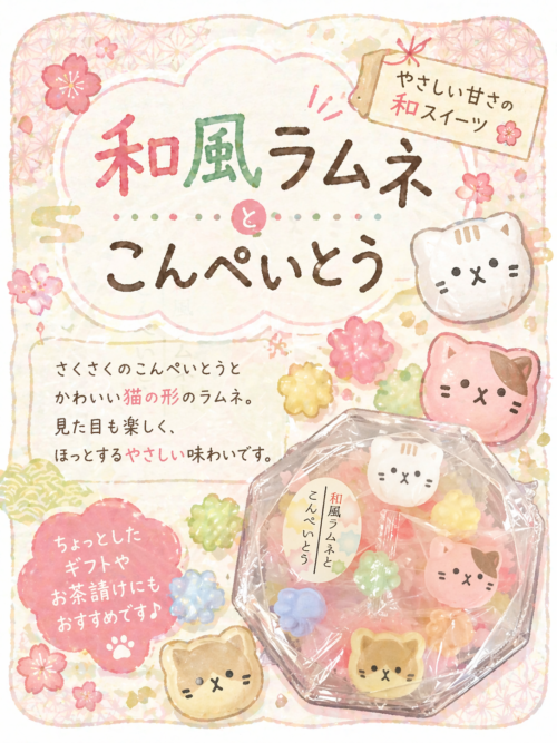 1F 大川園 和風ラムネとこんぺいとう 2026/4/24 更新 和風ラムネとこんぺいとう 再入荷いたしました! 可愛い猫の形のラムネ 見てるだけで癒されます! ちょっとしたギフトに大人気🎁 スタッフ一同お待ちしております🍵 大川園 ショップ情報
